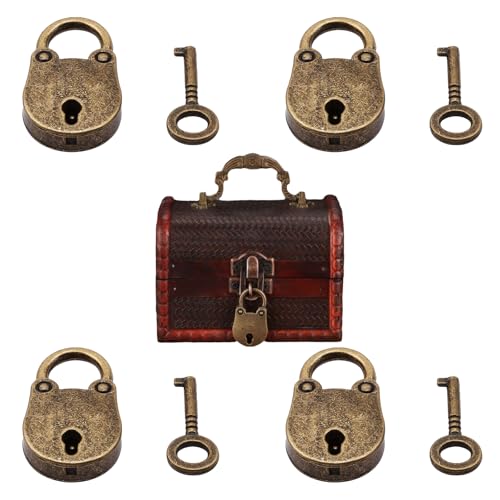 Eabdice 4 st Antika Hänglås i Vintage Stil, Björnform Metall Mini Lås Med Nyckel för Skattkista Smyckeskrin