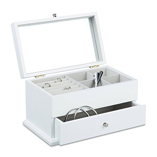 SONGMICS Smyckeskrin med glaslock, smyckeslåda med 2 nivåer, present till dina nära och kära, vitt, JBC238W01