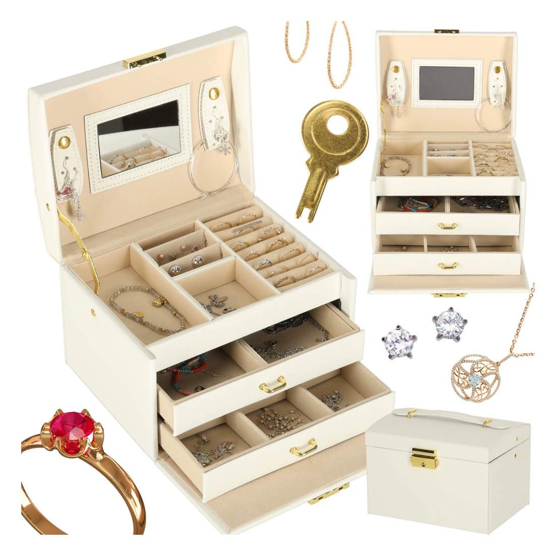 Elegant Låsbart Smyckeskrin i Konstläder Vit