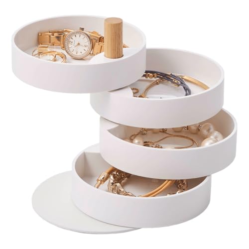 Umbra Spindle smyckeskrin – svängbart smyckeskrin med 3 nivåer för förvaring av smycken, klockor, accessoarer, souvenirer och mer, trä/högglans vit, en storlek passar alla