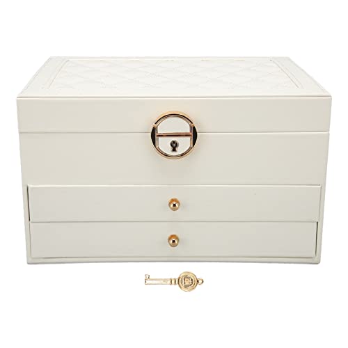 Smyckeskrin För Kvinnor, Vit PU-läder 2-lagers Multifunktionell Bärbar Smyckeskrin, Förvaringslåda, Låsbar Smyckesförvaringslåda, Lämplig För örhängen, Armband, Ringar, Halsband, Klockor