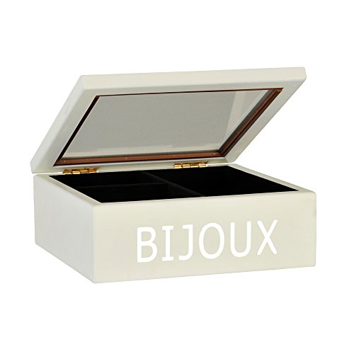 Relaxdays smyckeskrin med spegel elegant bröst med låda för halsband och klockor träförvaring med 4 fack och 5 ringhållare, svart, stor, 15,5 x 28 x 16,5 cm_P Large Vitt