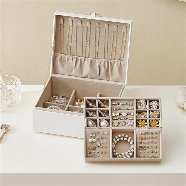 Smyckesskrin med 2 lådor och ett litet reseskrin - Vit