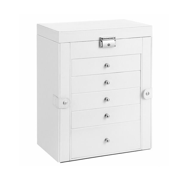 Smyckesskrin med 5 lådor och en spegel - Vit