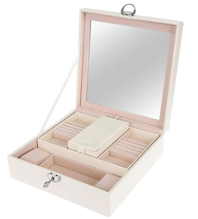 Smyckesskrin med spegel och 2 lådor - Vit/Guld