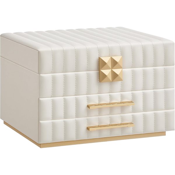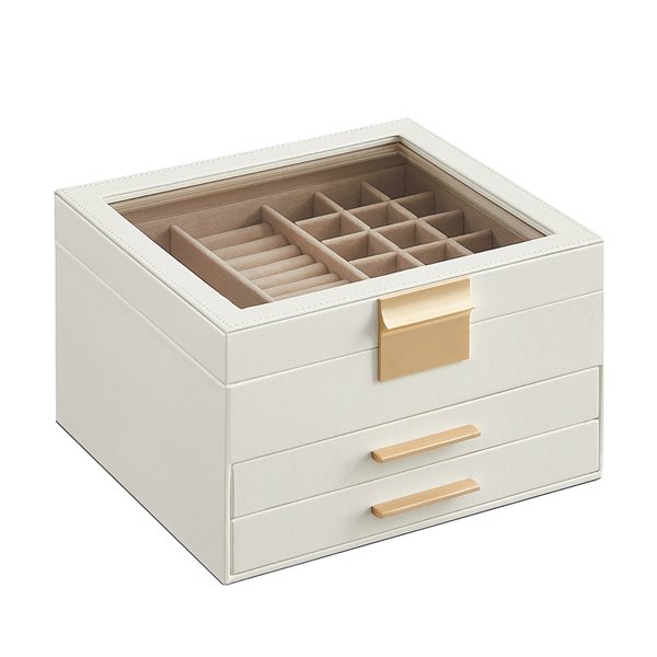 Smyckesskrin med glaslock och 3-lagers förvaring - Vit/Guld