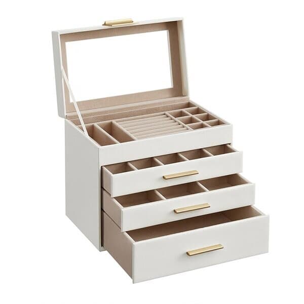 Smyckesskrin med 3 lådor och en spegel - Vit