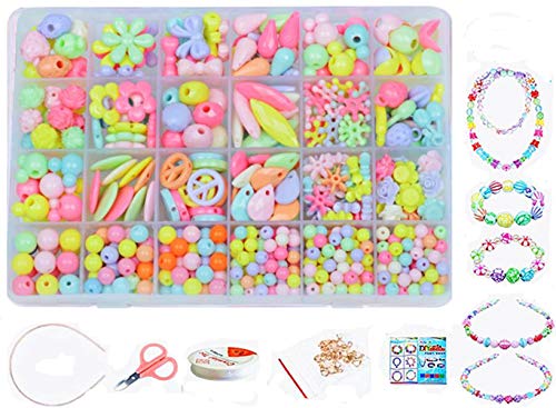 Vytung Barn gör-det-själv pärlor set, armband pärlkonst och smyckestillverkning, pärlsträngtillverkning set, 24 olika typer och former färgglad akryl gör-det-själv (färg: 4#)