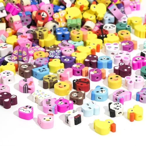 HERZONE – 300 stycken blandade keramiska pärlor lerpärlor mjuka keramiska pärlor för kvinnor och barn för smyckestillverkning armband (djur keramikpärlor)