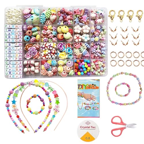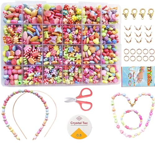UUEMB Gör-det-själv-pärlor för smyckestillverkning, kit för barn, 550 st armbandstillverkningskit för barn, pärlor för att göra halsband, armband, födelsedagspresenter för flickor, barn, ålder 4-12