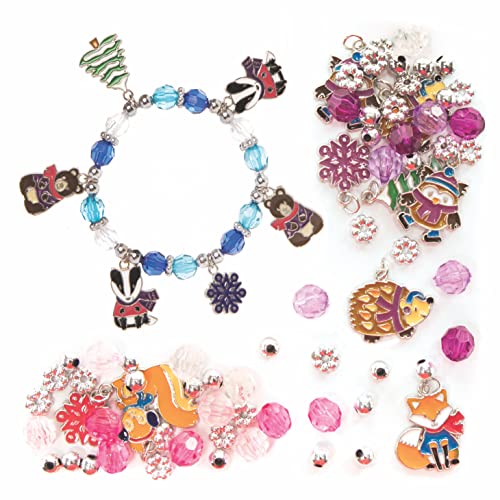 Baker Ross FC283 vinter skogs berlock armband kit – paket med 3, perfekt för barn smyckestillverkning, pärlkonst eller födelsedagsfest hantverksaktiviteter, julhantverk gåvor för flickor, silver, vit