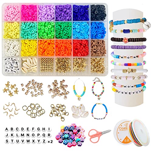 Clay pärlor, 5700 stycken Heishi-pärlor för armband, gör-det-själv, 15 färger, 6 mm, platta pärlor att trä på för barn, färgglada pysselpärlor, set för smyckestillverkning, armband, halsband