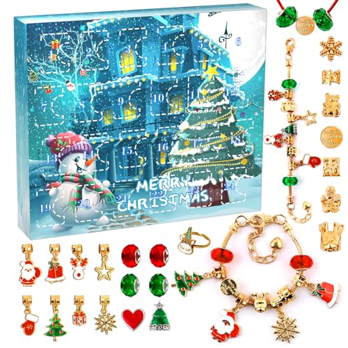 Julkalender, gåvor för tonårsflickor, gåvor, kit för smyckestillverkning, gåvor för flickor 4-12 år gamla flickor, berlockarmband tillverkning kit för barn, strumpfyllningar för flickor, julklappar,