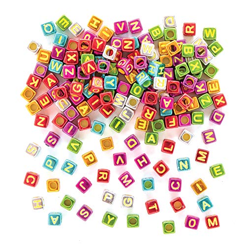 Baker Ross AX319 metalliska alfabetspärlor, kubform, 450 stycken, pärlpärlor för barn, konst och hantverk och smyckestillverkning