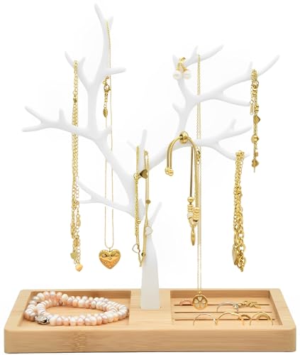 ProCase Smyckesställ smyckeshållare smyckesträd, smyckesorganisatör kedjor förvaring stativ örhängesställ smyckesförvaring kedjehållare smyckesstativ för halsband, armband, ringar – vit