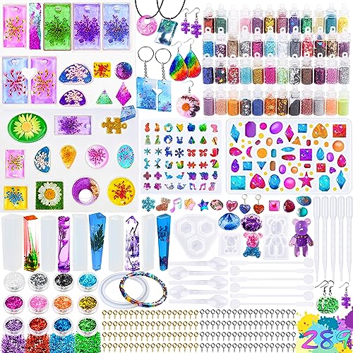 MUOIVG 289 stycken harts gjutharts silikonform, smycketillverkning kit, för smyckestillverkning hänge halsband örhängen dekoration smyckesställ gör-det-själv, olika mönster, inklusive