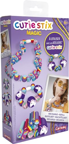 Cutie Stix – Magic påfyllningspaket verkstad – 11 stix enhörning, regnbåge, fjäril – smycketillverkning och armbandsset för barn från 6 år – kreativt set – Lansay