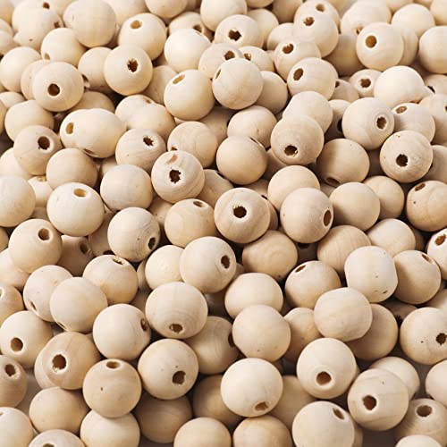 300 stycken 10 mm träpärlor med hål, runda träkulor natur, träpärlor för trädgängning för makramé, smycketillverkning (10 mm)
