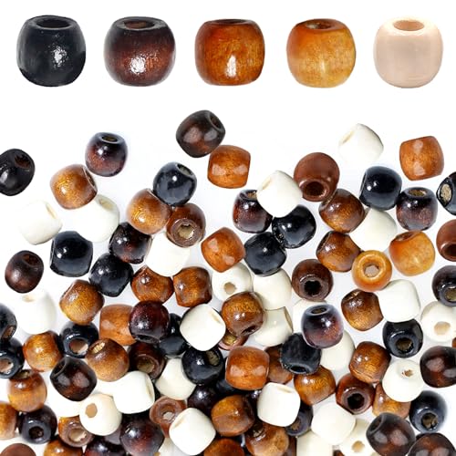 250 naturliga träpärlor, 5 färger, 12 x 11 mm, för att trä på pärlor och smycketillverkning