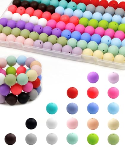 UNOZAVER 100 stycken färgglada silikonpärlor, 15 mm silikonpärlor pysselpärlor för armband, halsband, nyckelring, smycketillverkning, gör-det-själv-hantverk (20 färger)