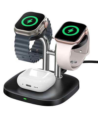 SwanScout Dubbel Laddare för Apple Watch 10, 5W Snabb Trådlös Laddare Kompatibel med Apple Watch Ultra 3/SE 3/Series 11/10/9/8, Trådlös Laddningsstation för Airpods Pro, SwanScout 704A (Ingen Adapter)