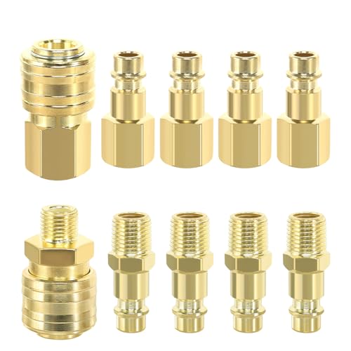 10 stycken tryckluftskoppling 1/4 tum BSP snabbkoppling tryckluft kopplingar tryckluftsslangkoppling tryckluftsanslutning tryckluftsadapter luftkompressorbeslag snabbanslutning för slang (guld)