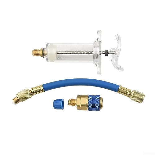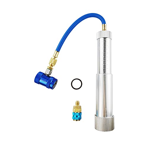Wisepick R1234yf kompressor oljefärgsinjektor med snabbkoppling R-134a system 1/4 tum SAE skala påfyllningsbar linje 2 oz handvridskruv