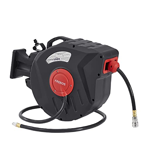 AREBOS Tryckluftsslang automatisk slangvinda | 20 m | Väggfäste | 1-4 tum snabbkoppling | UV-resistent | 180° vridbar | inkl monteringshållare
