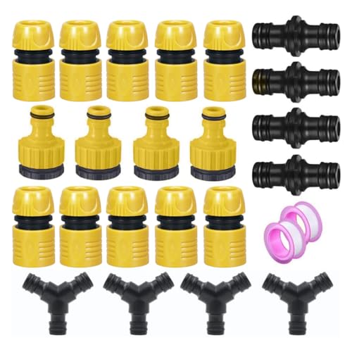 Voarge 24 Stycken Slangkontakter Set 1/2 Tum Snabbkoppling, 3/4 Tums Vattenkran Slangkontakt, Kontakt För Röranslutning Trädgårdsredskap (GELB-24)