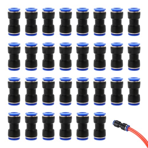 Guolich 60 stycken raka pneumatiska kontakter, plugganslutning I-kontakt, pneumatiska beslag push i snabbkoppling kontakt för luft vatten slanganslutning 4/6/8/10/12 mm
