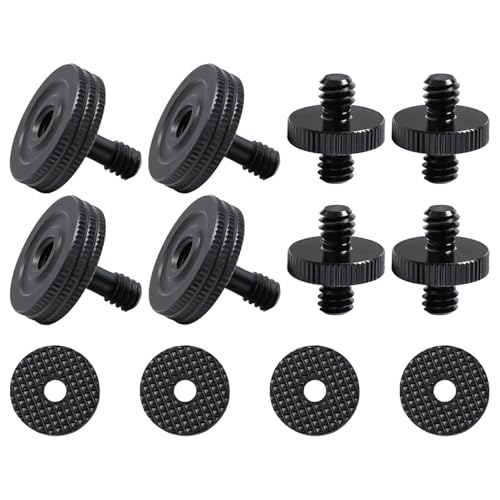 Neikafan tumskruv kamera snabbspännare 1/4 4 stycken och flänsskruv 1/4 tum hane till 1/4 tum hane 4 st med 4 st gummikuddar för kamera monteringsplatta blixt hållare