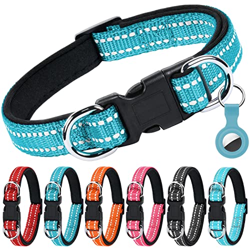 AUAUY Reflekterande Hundhalsband I Nylon, Dubbel Säkerhetsjusterbar Klassiska Hundhalsband Med Mjuk Neoprenvaddering Airtag-Fodral, Dubbla D-Ring-Snabbspänne För Små Valpar, Medelstora Hundar