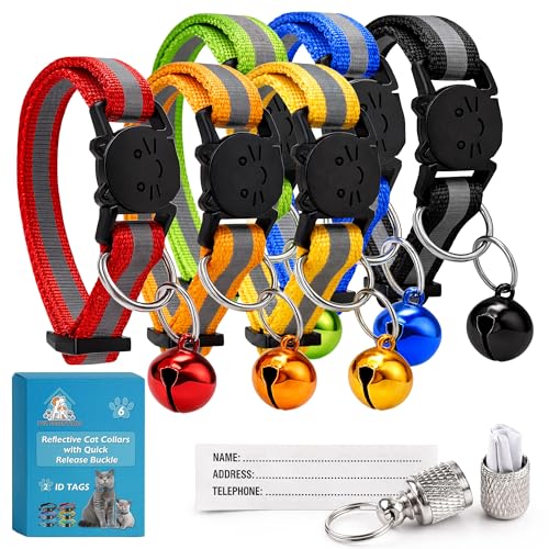 SOL 6-pack reflekterande katthalsband med snabbspänne och 2 ID-etiketter, justerbara och bekväma, hållbara material, inkluderar klocka perfekt för nattsynlighet och vardagskläder för katter och