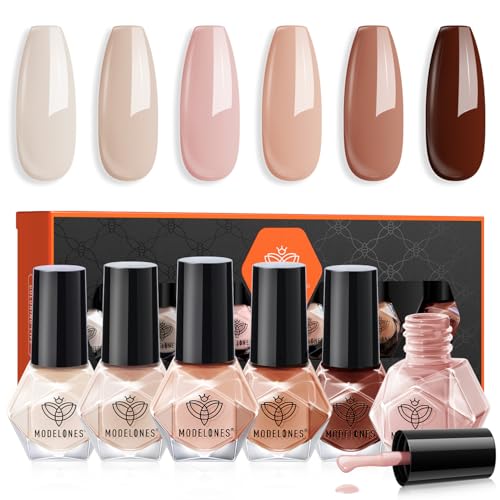 Modelones Lysande Snabbtorkande Nagellack, 6 St Set Naken Rosa Brun, Vattenbaserad Lackbeläggning, DIY Nagelkonst Manikyr, Present