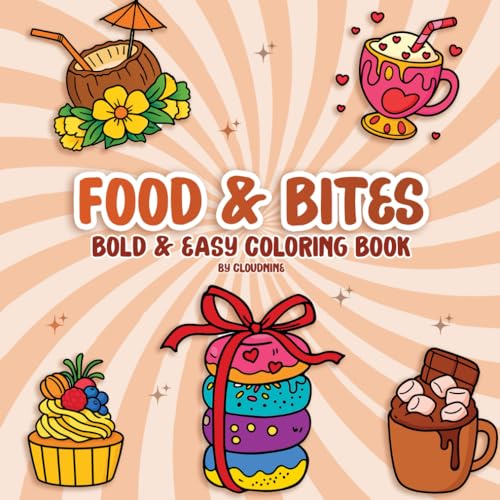 Food and Bites: 65 Fun Food Themed Images for All Ages | Bold & Easy Designs for Stress Relief, Relaxation, and Creativity 134 Pages of Engaging Snack Coloring Fun