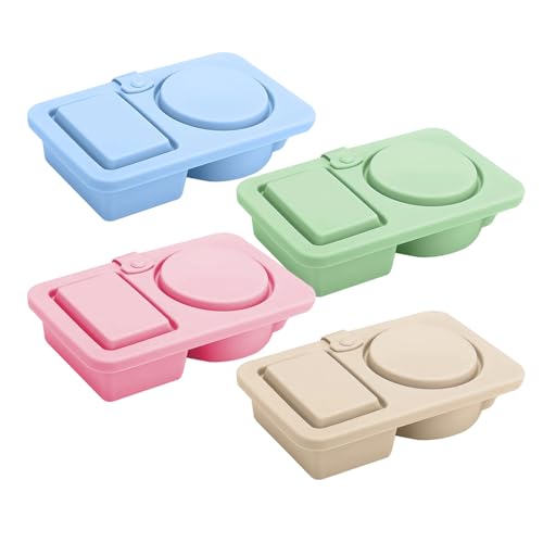 Återanvändbara mellanmålsbehållare, 4 stycken dubbelfack, Silicone Snack Box med lock, små matbehållare för såser, salladsförband, måltider, resor och picknick