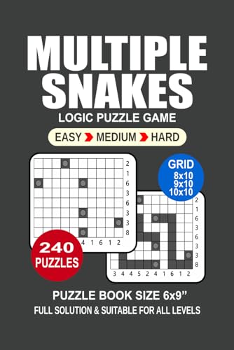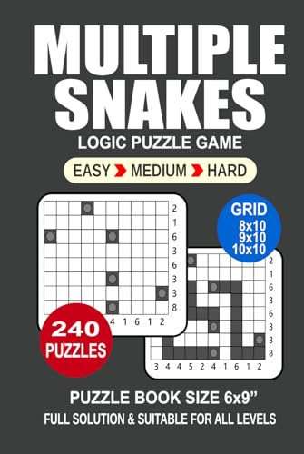 Multiple Snakes Puzzle Book For Adults: 240 Puzzles Multiple Snakes Great Logic Puzzle Game For Adults Seniors and Teens 3 Levels: Easy Medium and Hard Portable size 6x9 Inches.