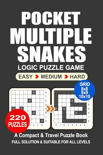 Pocket Puzzle Book: 220 Puzzles Multiple Snakes Great Logic Puzzle Game A Compact and Travel Puzzle Book 3 Levels Easy Medium and Hard Pocket Size 4x6 Inches.