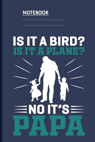 Is It A Bird? Is It A Plane? No It’s Papa With Dad And Kids Silhouette On Navy Blue Cover: Notebook