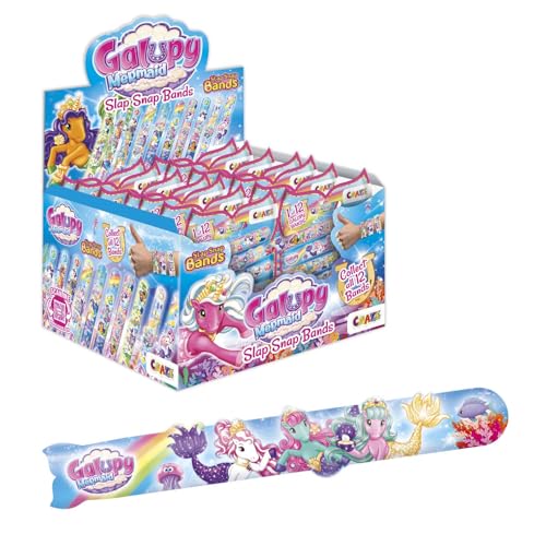 CRAZE Slap Snap Band, Display med 24 samlararmband för barn med Galupy Mermaid-mönster, 12 modeller för samlarobjekt, 16 cm, Silikon, Ingen ädelsten