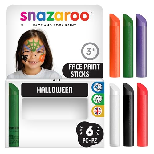 Snazaroo 1172075 set med sminkstift, 6 ansiktsfärger fria från dofter, hudvänlig och med tvål och vatten – perfekt för fester, halloween, karneval, karnavel – set halloween