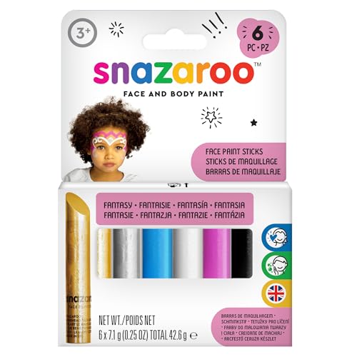 Snazaroo 1160601 set med sminkstift, 6 ansiktsfärger fria från dofter, hudvänliga och med tvål och vatten – perfekt för fester, halloween, karneval, karnavel – set flickor
