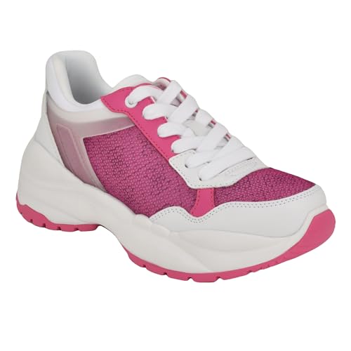 GUESS Women's SAMRA Sneaker, Pink/White 660, 7.5