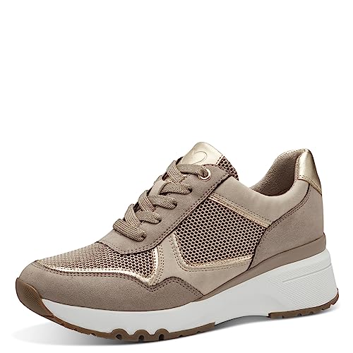 MARCO TOZZI Kil sneakers för kvinnor, kilklack med skosnören och dragkedja, ecru comb, 41 EU