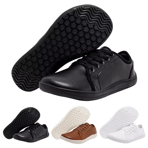 Barfotaskor, dam, läder, sommar, barfotaskor, dam, vår, promenadskor, bekväma sneakers, lätta sportskor, enfärgade, träningsskor, ortopediska komfortskor, lediga snörskor, sportiga, svart, 37 EU