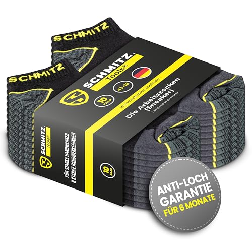 SCHMITZ.Tools arbetsstrumpor män korta i premiumkvalitet – sneakers arbetsstrumpor sommar – herrstrumpor med förstärkt häl och fotspets – korta strumpor arbete – hållbara, 10 par, 43-46 EU