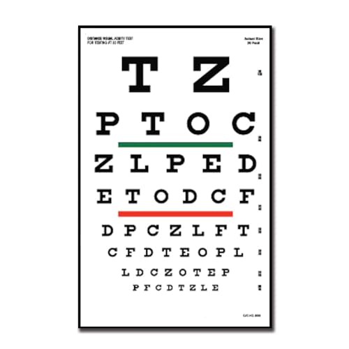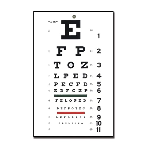 NOYOC Ögondiagram för ögonundersökningar 10 fot, snellen ögondiagram med träram för väggdekoration, 40 x 20 cm kanvas ögondiagram med lågt synfält med röda gröna linjer för barngåvor (1-pack 25 cm)
