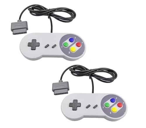 Uppsättning av 2 retro gamepads – kompatibel med SNES/Super Nintendo – Joypad Controller dubbelpack för klassiska 16-bitars spelkonsoler
