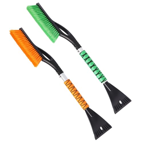LoyaGour Snöborste och isskrapa för vindruta, 67 cm fönsterskrapa för bil SUV och lastbil, isskrapor och borstar 2-i-1, vintertillbehör för bil (1-pack orange)