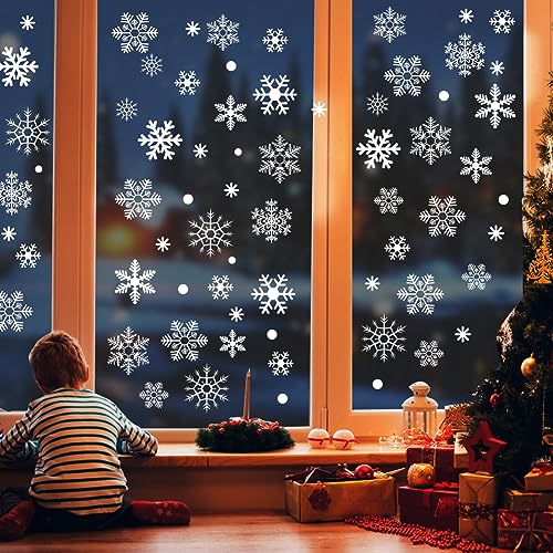 Lynlon 108 fönsterdekoration snöflingor snöflingor fönsterbilder avtagbara fönsterdekorationer statiskt självhäftande PVC-klistermärken för julfönster dekoration, dörrar, skyltfönster, vitrinskåp,